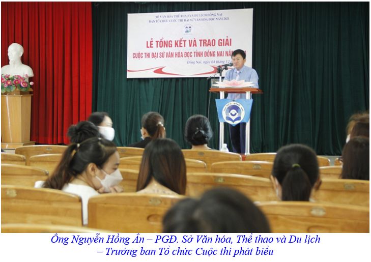 Sáng ngày 4/12/2021, tại Thư viện tỉnh Đồng Nai, Sở Văn hóa, Thể thao và Du lịch long trọng tổ chức Lễ tổng kết và trao giải cuộc thi Đại sứ văn hóa đọc tỉnh Đồng Nai năm 2021 và Cuộc thi “Tìm hiểu và đồng hành cùng Kênh Cùng bạn đọc sách chia sẻ sách hay, chung tay chống dịch”.