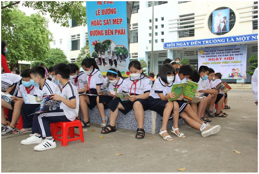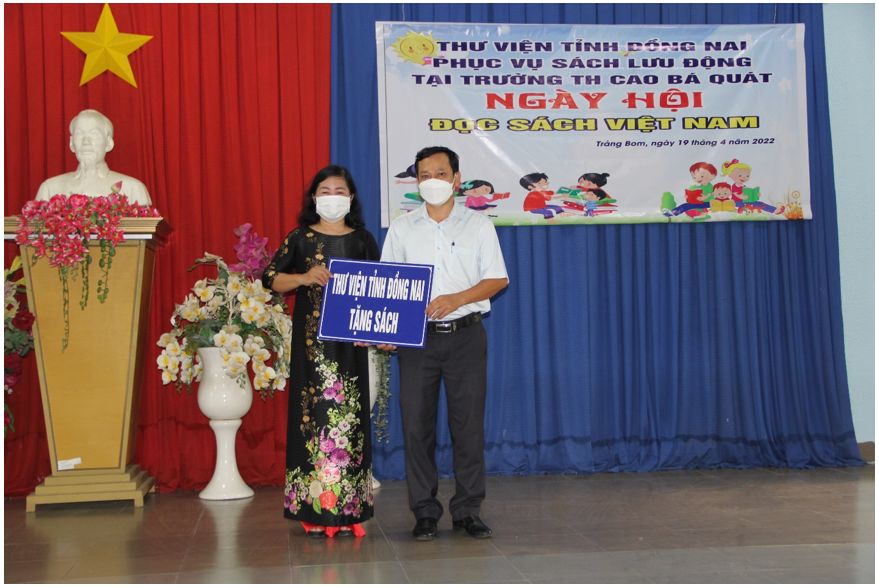 Bên cạnh tổ chức các hoạt động chào mừng Ngày Sách và Văn hóa đọc Việt Nam lần thứ 1, ngày 19/4/2022 Thư viện tỉnh Đồng Nai phối hợp với Trung tâm Văn hóa, Thông tin và Thể thao huyện Trảng Bom tổ chức phục vụ sách lưu động tại trường Tiểu học Cao Bá Quát thuộc thị trấn Trảng Bom, huyện Trảng Bom. Với mong muốn truyền thêm lòng yêu thích sách, ham học hỏi, khám phá thế giới bắt nguồn từ những trang sách cho các em thiếu nhi, đặc biệt là các em ở những nơi chưa có nhiều điều kiện tiếp xúc với kho tàng tri thức của nhân loại. Từ đó củng cố và phát triển văn hóa đọc ngày càng sâu rộng trong quần chúng nhân dân.