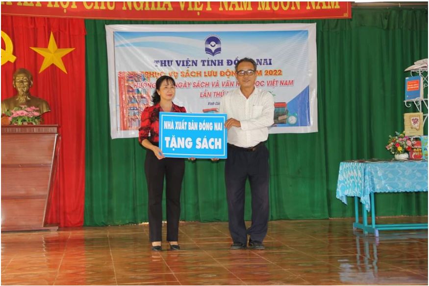 Trong đợt phục vụ này, ông Võ Xuân Lê – Phó Giám đốc Thư viện tỉnh Đồng Nai đã trao tặng sách cho trường Tiểu học Kim Đồng nhằm góp phần làm phong phú thêm nguồn tài liệu thư viện nhà trường. Đồng thời ông Trương Văn Tuấn – Phó giám đốc Nhà Xuất bản cũng trao tặng 200 bản sách thuộc thể loại truyện tranh, cổ tích, sách tham khảo cho các em học sinh và 20 bản sách về văn hóa, lịch sử địa phương cho các thầy cô giáo nghiên cứu. Đoàn Thanh niên huyện Vĩnh Cửu quan tâm trao tặng 20 phần quà gồm 200 cuốn tập cho các em học sinh vượt khó.