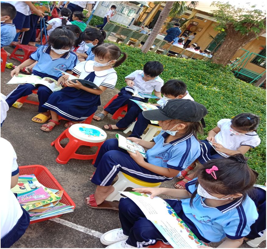 Tại đây các em được thỏa sức đọc những cuốn sách mà mình yêu thích, được giao lưu với các bạn về niềm yêu thích sách vở, về văn hóa đọc, các em có cơ hội tiếp cận thêm những kiến thức hữu ích phục vụ cho việc học tập của mình đạt hiệu quả cao. Để bầu không khí trở nên sôi nổi, hấp dẫn hơn, cán bộ Thư viện tỉnh còn tổ chức vui chơi có thưởng cho các bạn học sinh với những câu hỏi dí dỏm nhưng không xa rời kiến thức mà thầy cô giáo đã truyền đạt trên lớp. Đợt phục vụ lưu động này đã phục vụ cho gần 500 em học sinh trường tiểu học Bảo Vinh và 300 em học sinh trường tiểu học Nguyễn Huệ.