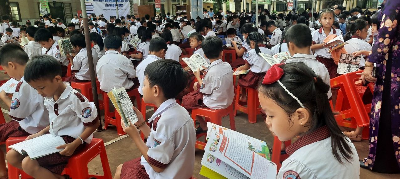 Học sinh Trường Lê Văn Tám tham gia buổi đọc sách