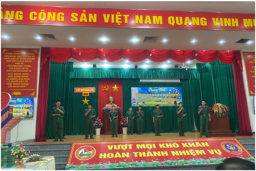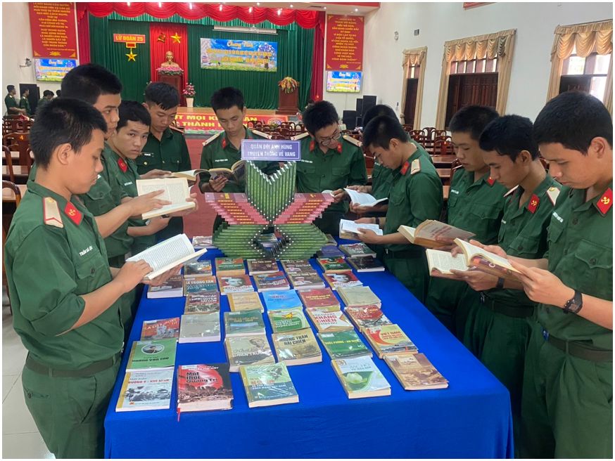 Cũng trong buổi khai mạc, cán bộ Thư viện tỉnh đã giới thiệu đến cán bộ, chiến sĩ cuốn sách “Thiêng liêng chủ quyền biển đảo Việt Nam”, đây là một hoạt động nhằm bổ trợ kỹ năng giới thiệu sách một cách đầy đủ, hấp dẫn, lôi cuốn đối với cán bộ chiến sĩ, giúp các chiến sĩ ngày càng yêu thích đọc sách và đọc một cách hiệu quả, được đông đảo các chiến sĩ Lữ đoàn 25 hưởng ứng. Bên cạnh đó, Lữ đoàn 25 đã tổ chức Chung kết cuộc thi “Cảm nhận về Sách và giới thiệu về Tác phẩm, Tác giả” do Lữ đoàn phát động đến toàn thể cán bộ, chiến sĩ trong đơn vị nhằm giới thiệu, chia sẻ cảm nhận về tác phẩm sách đã truyền cảm hứng, lan tỏa tri thức, văn hóa đọc, khơi dậy khát vọng cống hiến, đóng góp tích cực cho xã hội và quân đội. Sau khi trao giải cho các thí sinh đạt thứ hạng cao, cán bộ, chiến sĩ cùng tham quan mô hình xếp sách nghệ thuật và đọc sách.