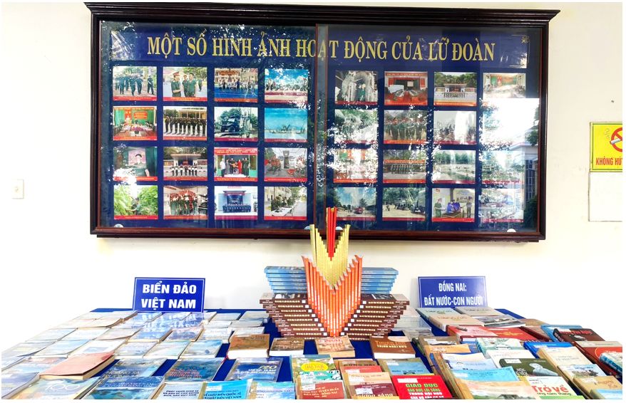 Trong dịp này, Thư viện tỉnh đã xếp sách các mô hình nghệ thuật và trưng bày phục vụ sách hơn 1.000 tài liệu gồm các chủ đề về Chủ tịch Hồ Chí Minh; Tư liệu về Đảng Cộng sản Việt Nam; Ngày miền Nam giải phóng, thống nhất đất nước; Quân đội anh hùng; Biển đảo Việt Nam, Đồng Nai Đất nước - Con người… Thông qua đó, giúp cán bộ, chiến sĩ được tiếp cận và trao đổi về những ấn phẩm sách có giá trị về nội dung, tư tưởng, hình thức để nâng cao kiến thức, phục vụ trong học tập và công tác.