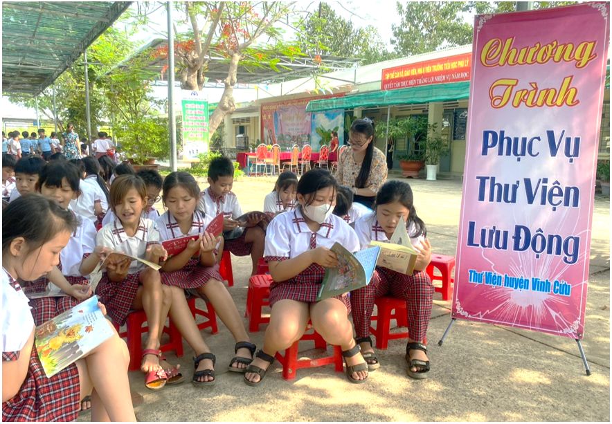Sáng ngày 26/4, Thư viện tỉnh Đồng Nai phối hợp với Trung tâm Văn hóa - Thông tin và Thể thao huyện Vĩnh Cửu, tổ chức hoạt động phục vụ lưu động tại Trường tiểu học Phú Lý xã Phú Lý với sự tham gia của 650 em học sinh cùng giáo viên toàn trường. Với hình thức phục vụ lưu động, Thư viện tỉnh mang đến cho các em hơn 2.000 bản sách, có nội dung phong phú, phù hợp dành cho lứa tuổi thiếu nhi phát triển về tri thức cùng kỹ năng sống như: lịch sử Việt Nam, truyện thiếu nhi, sách khám phá khoa học, sách phát triển kỹ năng… Đồng thời, các em được hướng dẫn những kỹ năng tìm sách và đọc sách, tìm hiểu thêm về văn hóa đọc sách.