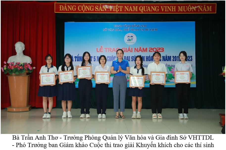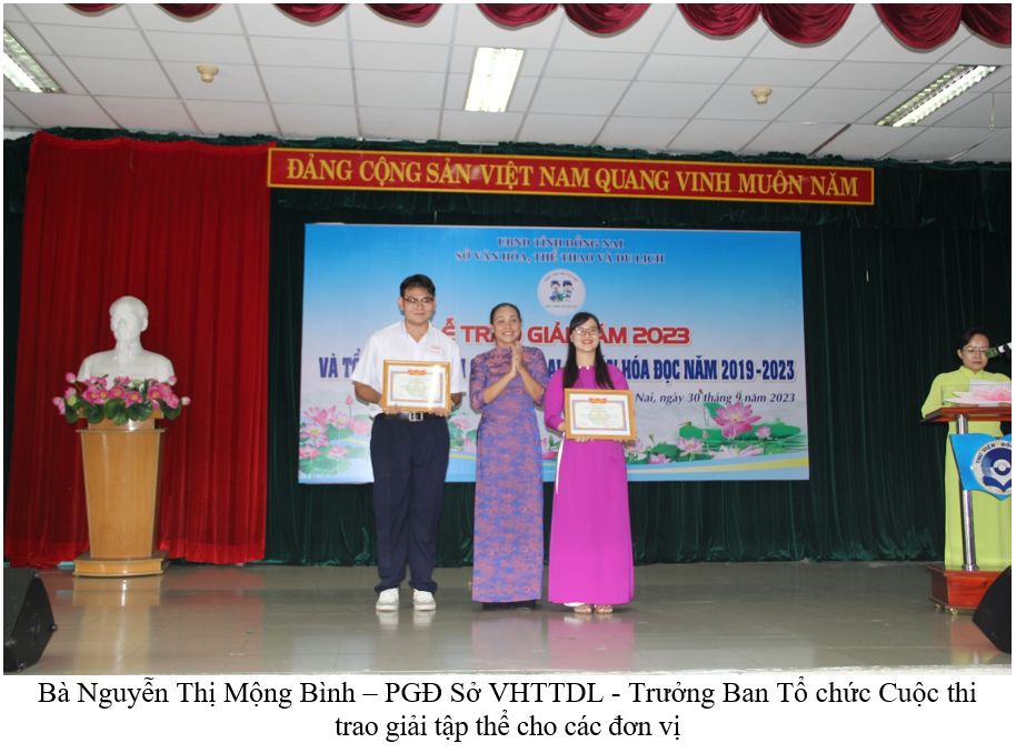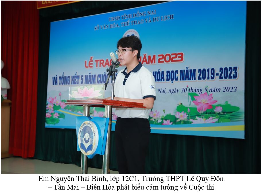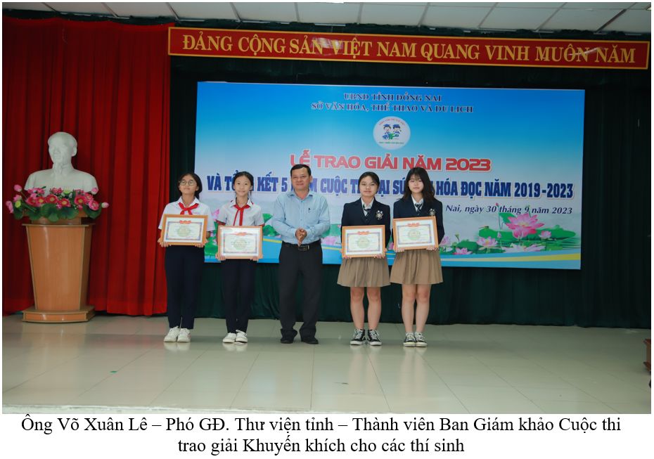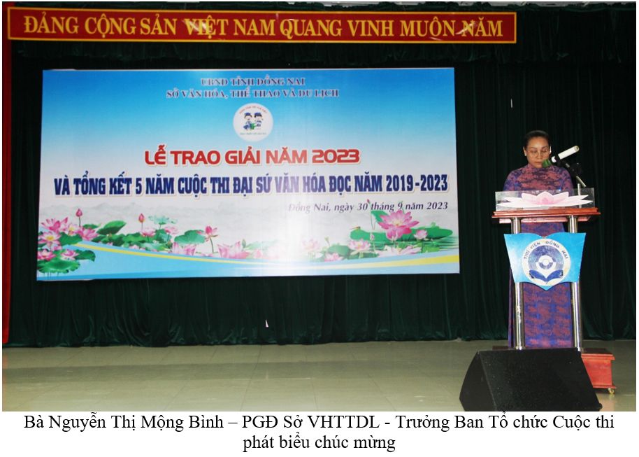 Sáng ngày 30/9/2023, tại Hội trường Thư viện tỉnh, Sở Văn hóa, Thể thao và Du lịch tỉnh Đồng Nai đã long trọng tổ chức Lễ trao giải năm 2023 và tổng kết 5 năm cuộc thi Đại sứ văn hoá đọc năm 2019 – 2023.