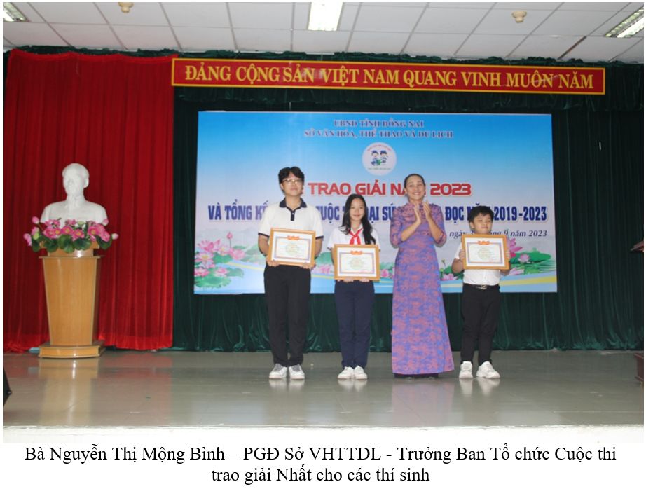 Đến dự Lễ trao giải có: Bà Nguyễn Thị Mộng Bình – PGĐ Sở VHTTDL - Trưởng Ban Tổ chức Cuộc thi; Ông Nguyễn Ngọc Thành – GĐ. Thư viện tỉnh - Trưởng ban Giám khảo; Bà Trần Anh Thơ - Trưởng Phòng Quản lý Văn hóa và Gia đình Sở VHTTDL - Phó Trưởng ban Giám khảo; Bà Tăng Thị Kim Huệ - Chuyên viên Phòng Nghiệp vụ Sở Giáo dục và Đào tạo; Đại diện lãnh đạo các đơn vị trực thuộc; Đại diện Ban Giám hiệu các trường cùng các quý thầy cô, quý phụ huynh, các em học sinh đạt giải từ năm 2020 - 2023. Ngoài ra, đến dự và đưa tin còn có Đài Phát thanh và Truyền hình Đồng Nai, Báo Đồng Nai, Đài Phát thanh thành phố Biên Hòa.