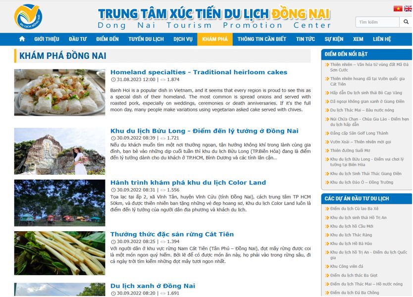 Trang website của Trung tâm Xúc tiến du lịch Đồng Nai liên tục giới thiệu nhiều điểm đến thú vị cho cộng đồng