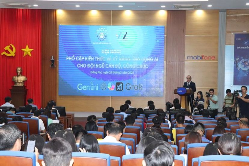 Cán bộ, công chức các sở, ban, ngành Đồng Nai tham gia hội nghị Phổ cập kiến thức và kỹ năng ứng dụng AI (TP. Biên Hòa).