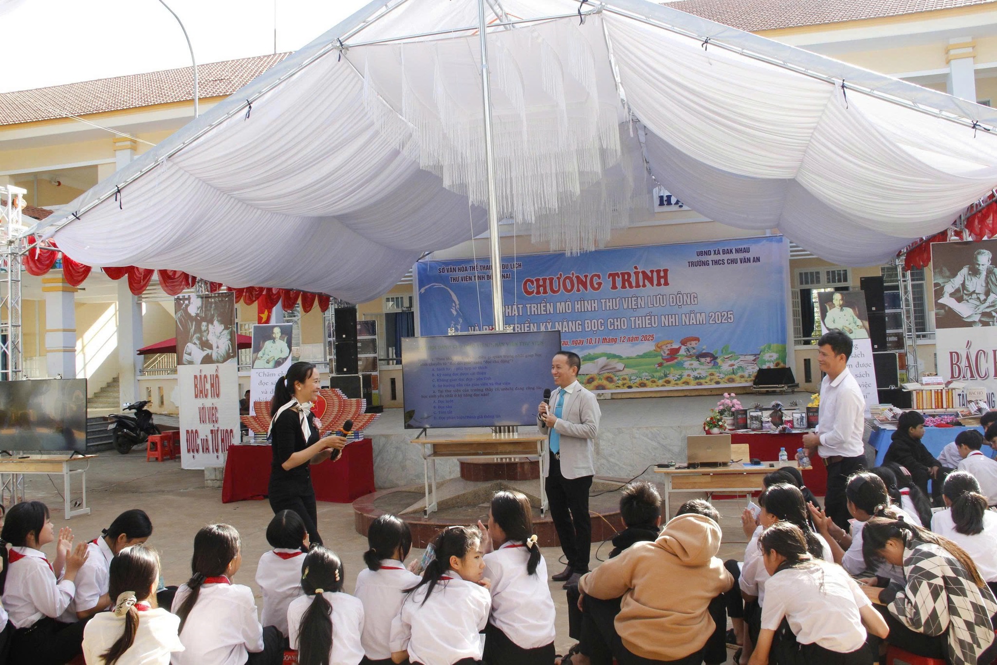 Sáng ngày 11/12/2025, Thư viện tỉnh Đồng Nai phối hợp với Ủy ban Nhân dân xã Đăk Nhau tổ chức chương trình “Thư viện lưu động, thư viện kết hợp trường học và phát triển kỹ năng đọc cho học sinh” tại Trường THCS Chu Văn An.