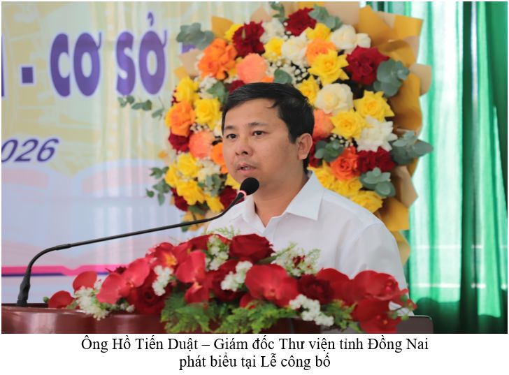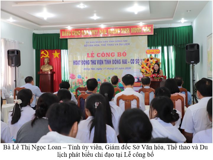 Sáng ngày 17/01/2026, Thư viện tỉnh Đồng Nai long trọng tổ chức Lễ công bố hoạt động Thư viện tỉnh Đồng Nai – Cơ sở 2 tại phường Bình Phước. Buổi lễ diễn ra trong không khí trang trọng, thể hiện sự quan tâm của các cấp lãnh đạo đối với sự nghiệp phát triển văn hóa đọc và xây dựng xã hội học tập trên địa bàn tỉnh.