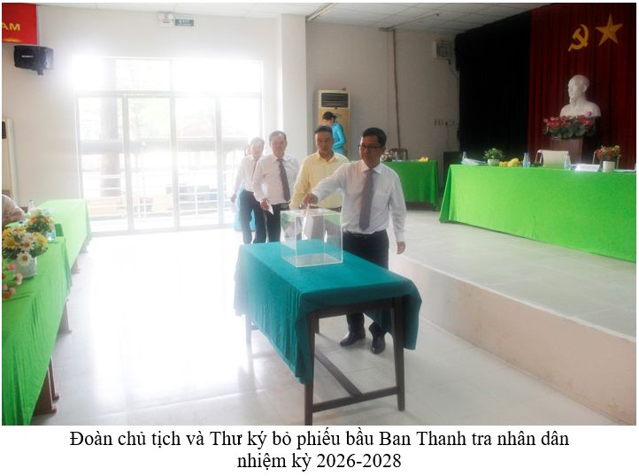 Tiếp đó, Hội nghị cũng đã kiện toàn Ban Thanh tra nhân dân nhiệm kỳ 2026–2028, thống nhất cao bầu ra Ban Thanh tra nhân dân nhiệm kỳ 2026–2028 gồm 03 đồng chí, trong đó: đồng chí Lê Văn Trường – Trưởng ban; đồng chí Đinh Thị Nhài và đồng chí Đào Thị Thanh – Ủy viên.