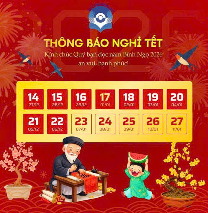⏰ Từ ngày 14/02/2026 (Tức ngày 27 tháng Chạp năm Ất Tỵ) ➡ Đến hết ngày 22/02/2026