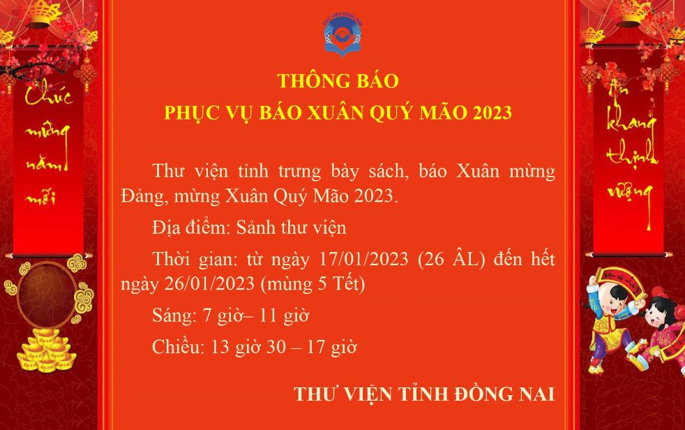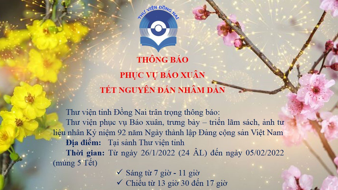 Thư viện tỉnh Đồng Nai thông báo lịch nghỉ Tết nguyên đán Bính Ngọ 2026