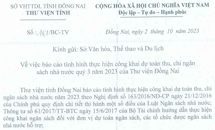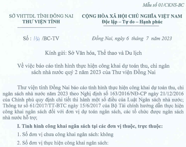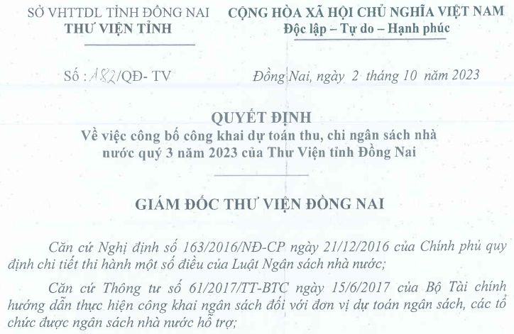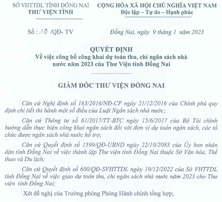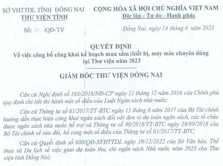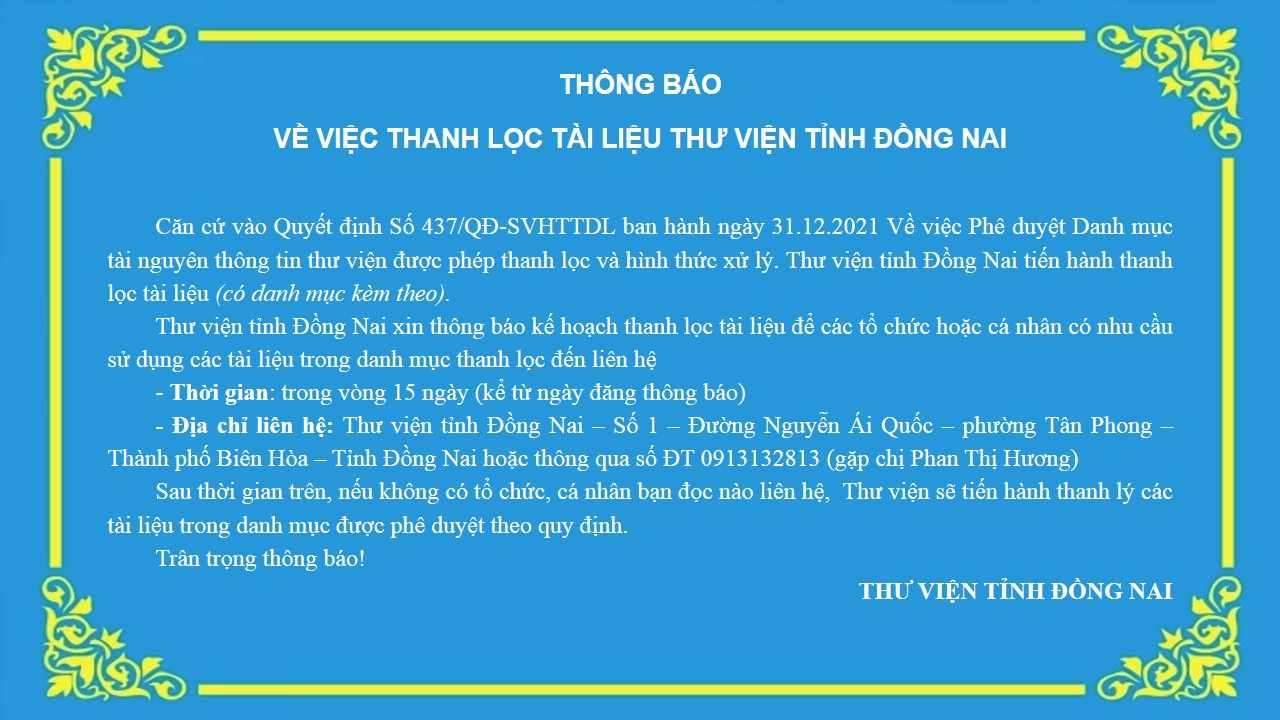 Thông báo thanh lọc tài liệu thư viện tỉnh Đồng Nai