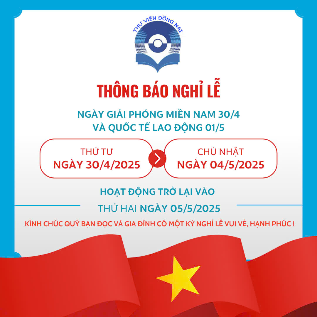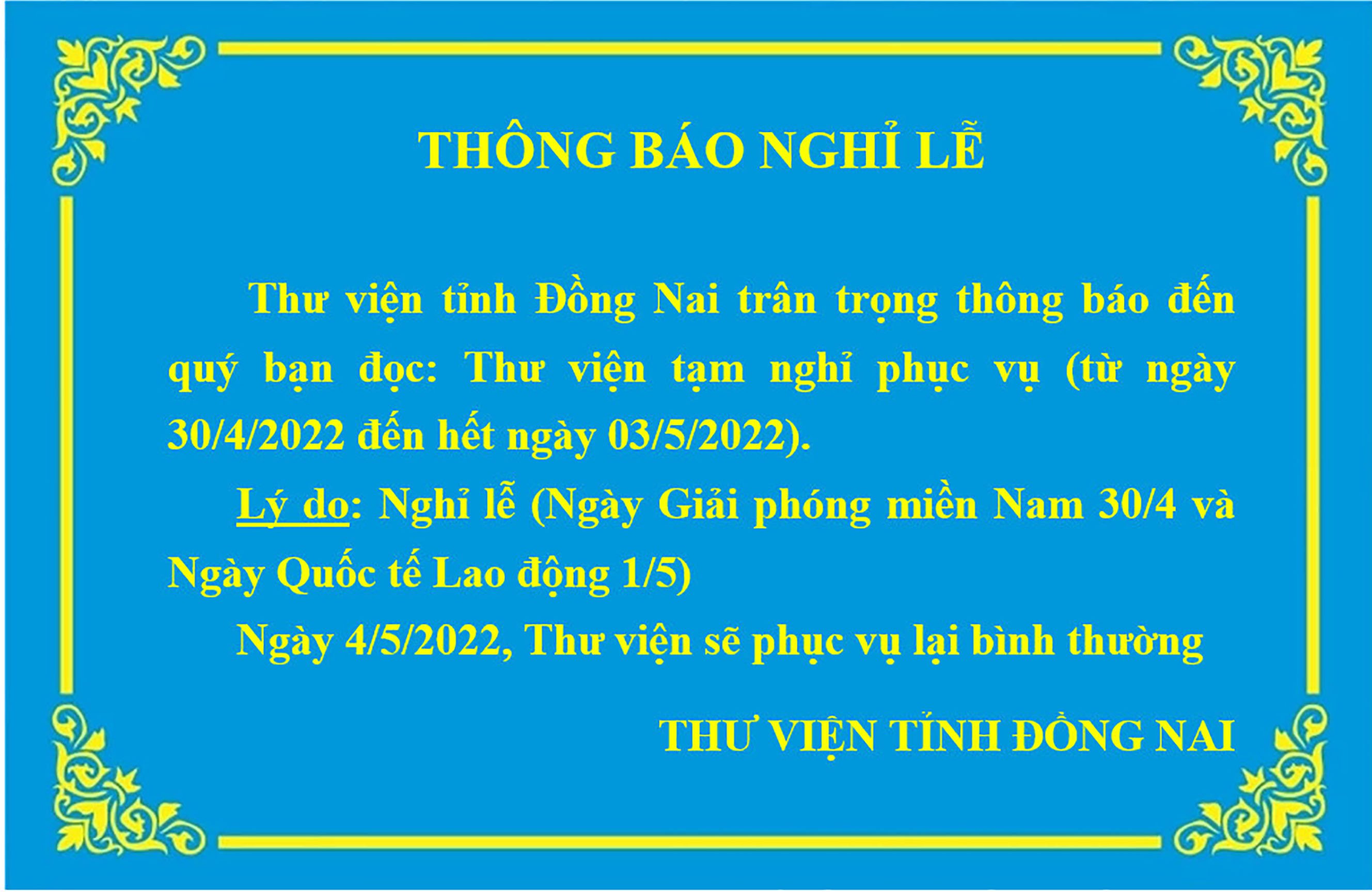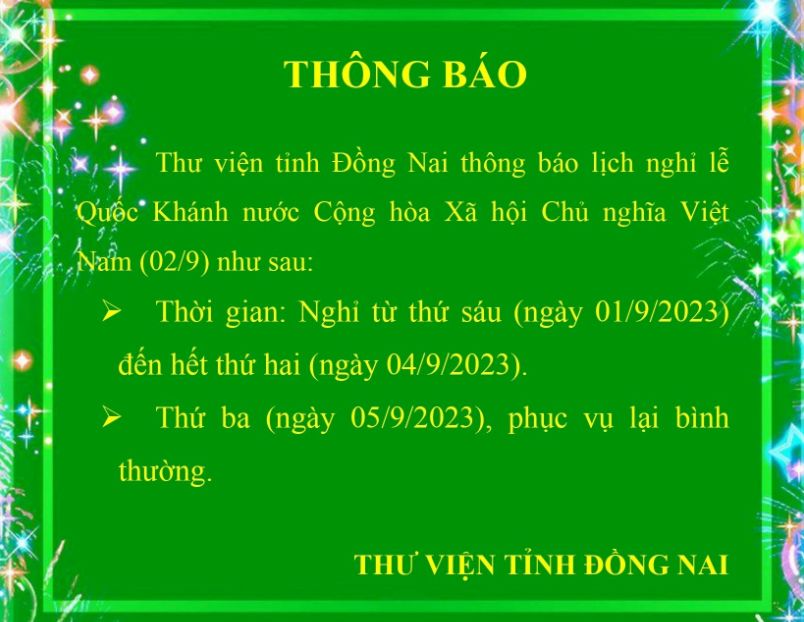 Thư viện tỉnh Đồng Nai trân trọng thông báo đến Quý bạn đọc lịch nghỉ Lễ Quốc khánh 2/9